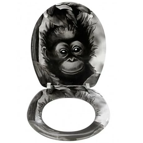 The Monkey Duroplast Toilet Seat from Wenko, made of high quality Duroplastic with a animal motif on and in the lid as well as on the ring.