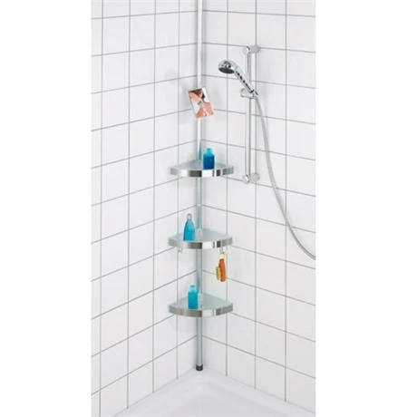 A stylish premium telescopic shower corner from Wenko, rod made from solid quality aluminium. The shower corner is universal applicable in shower cubicles, at the corners of the bath tubs or in bathroom. Offers an ideal storage solution for your shampoo, soap, sponge etc. keeping them neat, tidy and accessible.