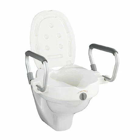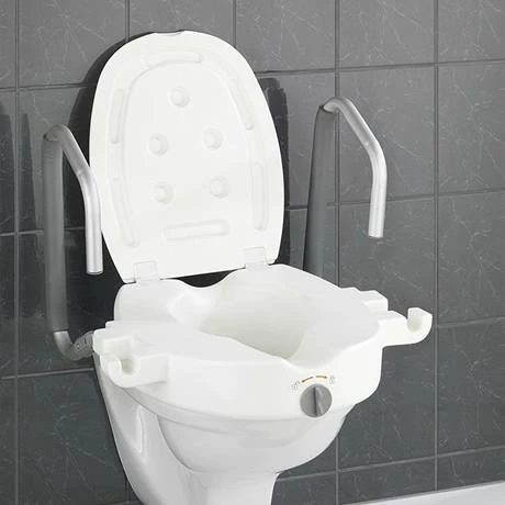 This innovative toilet seat is ideal for the elderly or people with joint problems. It offers a comfortable seating position thanks to the 10cm raised seat and has integrated arm rests that lift up and down for comfort and safety. Suitable for most standard toilet pans it features a locking device to ensure a secure fit onto your toilet and is quick and easy to attach and remove. Manufactured from sturdy plastic and can withstand loads of up to 130kg.