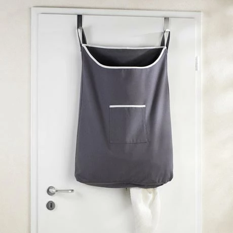 A over the door laundry bag from Wenko, made from hard wearing durable material. This practical space-saving laundry bin would be perfect for any small bathroom or en-suite.